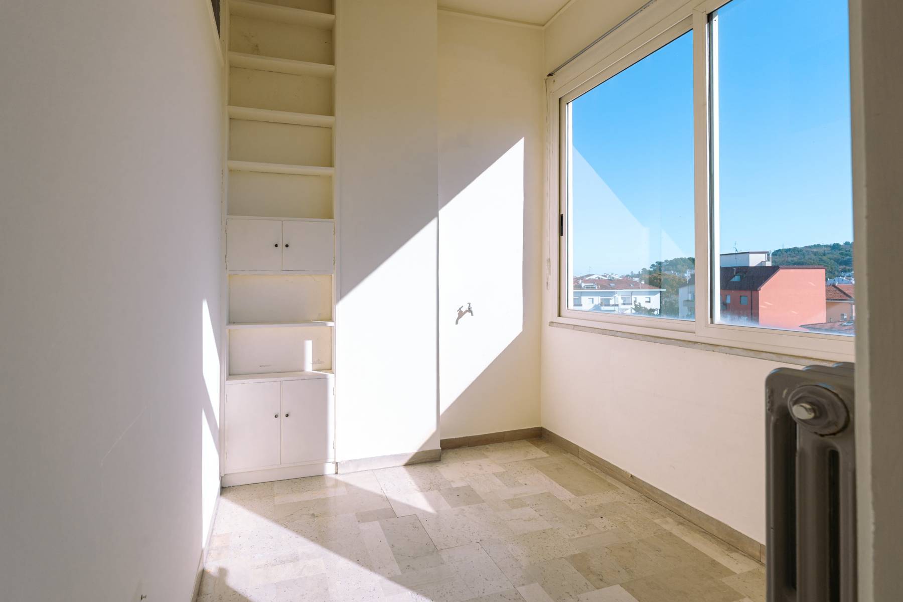 L’immobile si trova a pochi passi da Piazzale Carducci e dal Tribunale di Pesaro, situato al quarto e ultimo piano di un edificio dotato di ascensore.